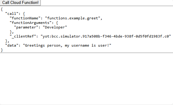 Click on the Call Cloud Function! button. This is what the component and its response will look like: