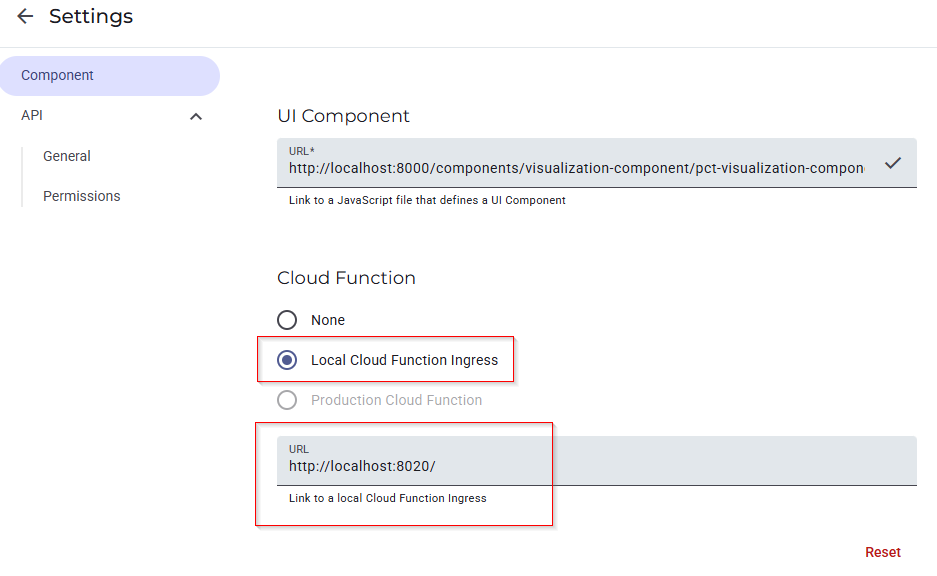 Once the simulator has started, make sure to check in Settings > Component that the Local Cloud Function Ingress is being used. Without it, you will not be able to test your local function:
