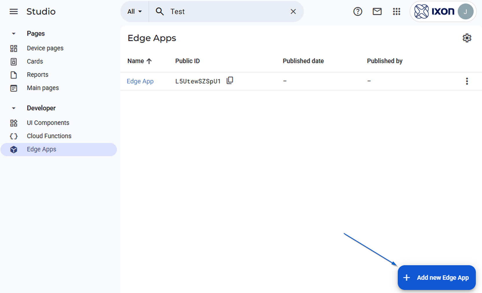 Navigate to Studio > Developer > Edge Apps.